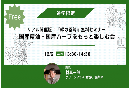 リアル開催版『緑の薬箱セミナー』!林真一郎が皆様に直接国産精油・国産ハーブのさらなる魅力につい...