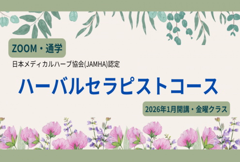 日本メディカルハーブ協会認定 ハーバルセラピストコース2026年1月期金曜コース【ZOOM・通学】