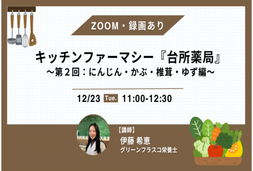 【ZOOM】キッチンファーマシー『台所薬局』 ~第2回:にんじん・かぶ・椎茸・ゆず編~